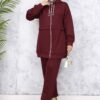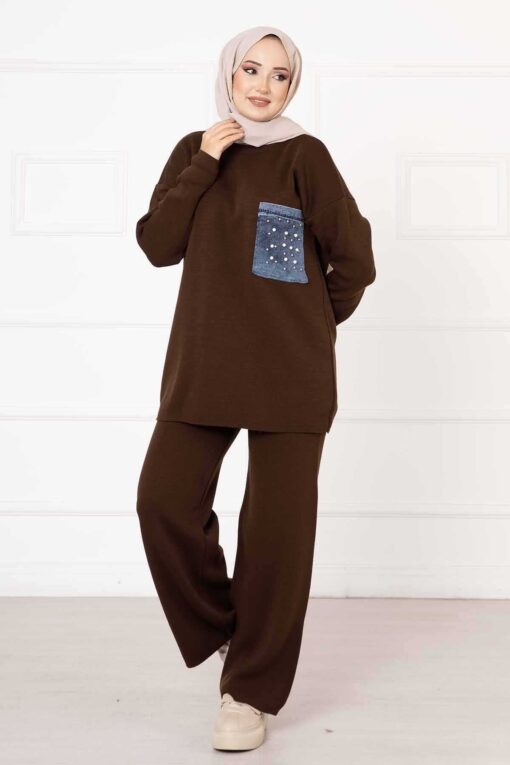 المنتج مخصص لفصلي الخريف والشتاء. يتكون المنتج من قطعتين: سترة وبنطلون. تتميز السترة برقبة دائرية وتفاصيل جيب. يتميز البنطلون بنمط مريح مع خصر مطاطي. المنتج بمقاس قياسي ويناسب المقاسات 36-38-40-42-44. طول التونيك: 77 سم، طول البنطلون 1-3 سم: 109 سم. مرونة الطول 1-3 سم مميزات القماش: تريكو مصنوع من القماش قياسات الموديل: المقاس 38 / الارتفاع 1.66 سم / الأرداف 90 سم 77 سم / الصدر 90 سم تعليمات الغسيل: يجب أن يتم الغسيل من الداخل إلى الخارج عند درجة حرارة 30 درجة (أدنى درجة). قد يكون هناك اختلاف في لون المنتج بسبب التصوير على الشال المستخدم في هذا المنتج