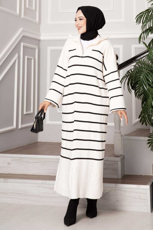 المنتج مخصص لفصلي الخريف والشتاء. طوق المنتج ذو ياقة مدورة وبه سحاب نصفي قابل للاستخدام. نطاق مقاس المنتج متوافق مع مقاسات STD – 36-42 الطول: 135 سم مميزات القماش: مصنوع من نسيج محبوك مقاسات 38 / الارتفاع 1.68 سم. الأرداف 90 سم / الخصر 77 سم / الصدر 90 سم. تعليمات الغسيل: يجب غسله مقلوبًا عند درجة حرارة 30 درجة (أدنى درجة). قد يكون هناك اختلاف في لون المنتج بسبب التصوير.
