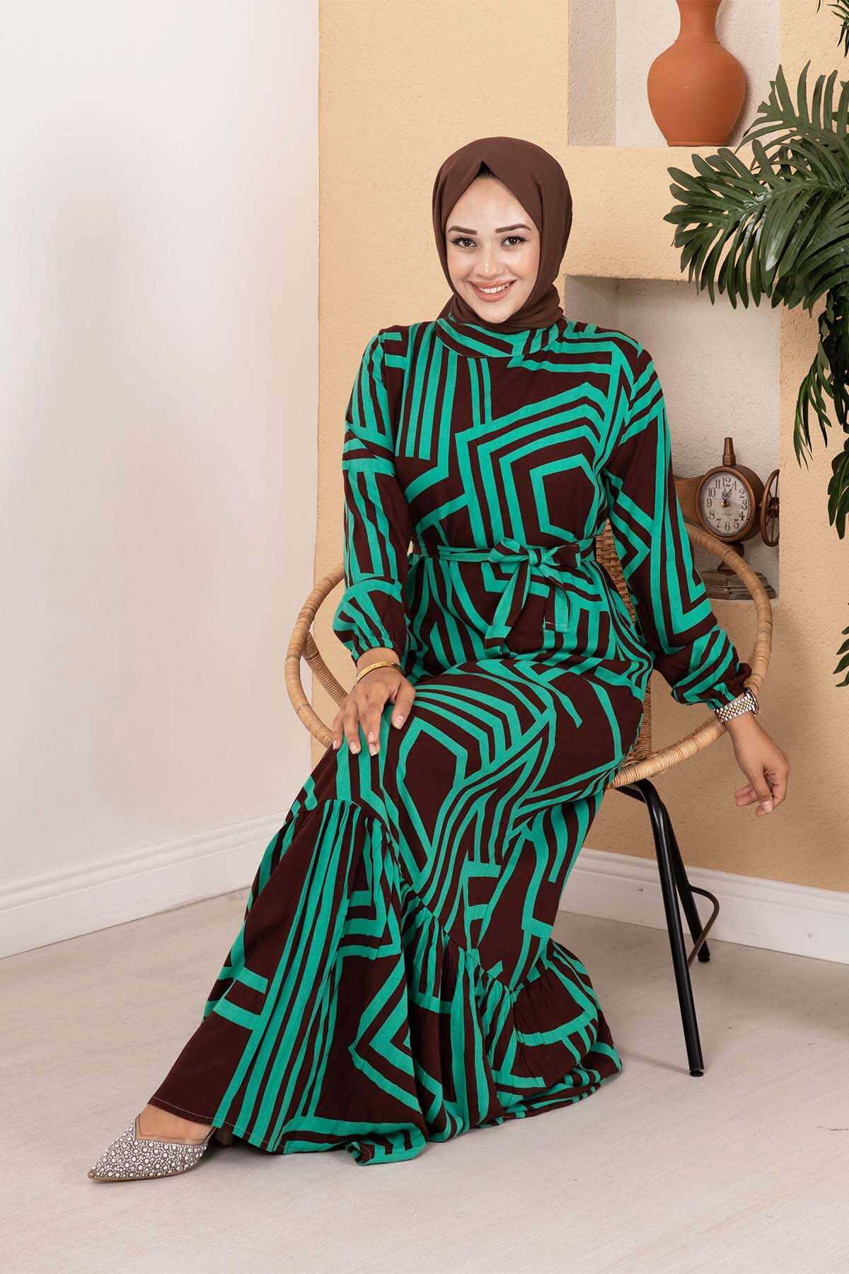 المنتج موسمي. يحتوي المنتج على رقبة دائرية وسحاب في الخلف لسهولة الاستخدام. أصفاد الذراع مرنة وغير مبطنة. يحتوي على حزام متحرك حول الخصر. إنه نموذج لباس الحجاب الصيفي.