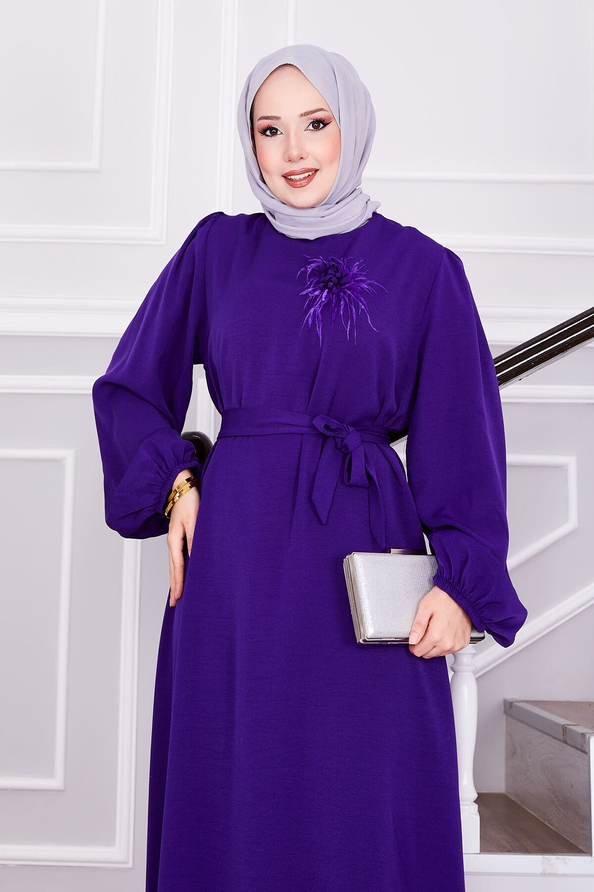 فستان الحجاب الفضفاض الأنيق للموسم الجديد مع حزام عند الخصر سيجعلك تبدين رشيقة وأنيقة في أيامك الخاصة. البروش الريشي الموجود عليه، والذي سيضيف أناقة إلى أناقتك، قابل للإزالة. إذا كنت ترغب في ذلك، يمكنك إزالته والحصول على مظهر بسيط. نتمنى لك تسوقًا ممتعًا مع فستاننا الأنيق والمريح.