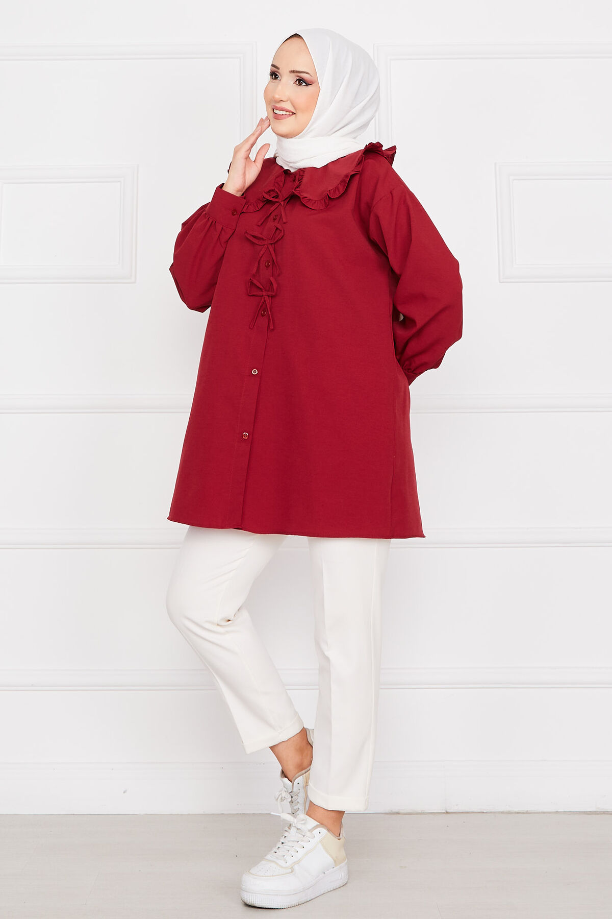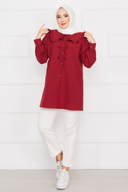 المنتج موسمي. تونيك بأزرار أمامية، وتفاصيل فيونكة، وياقة كشكشة للأطفال. الطول: 76 سم، قد يختلف من 1 إلى 3 سم حسب مرونة المنتج. مواصفات القماش: مصنوع من قماش البوبلين. المنتج متوافق مع المقاسات 38-40-42-44. مقاسات العارضة: مقاس 38 / الطول 1.68 سم / الورك 90 سم / الخصر 77 سم / الصدر 90 سم. تعليمات الغسيل: يُغسل من الداخل على درجة حرارة 30 درجة مئوية (أقل درجة حرارة). قد يختلف لون المنتج بسبب التصوير. تونيك أنيق ومريح، يمكنكِ تنسيقه بسهولة في حياتكِ اليومية، سيناسبكِ تمامًا وسيكون قطعتكِ المفضلة.
