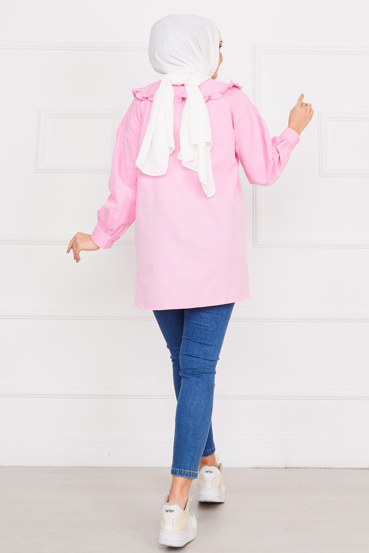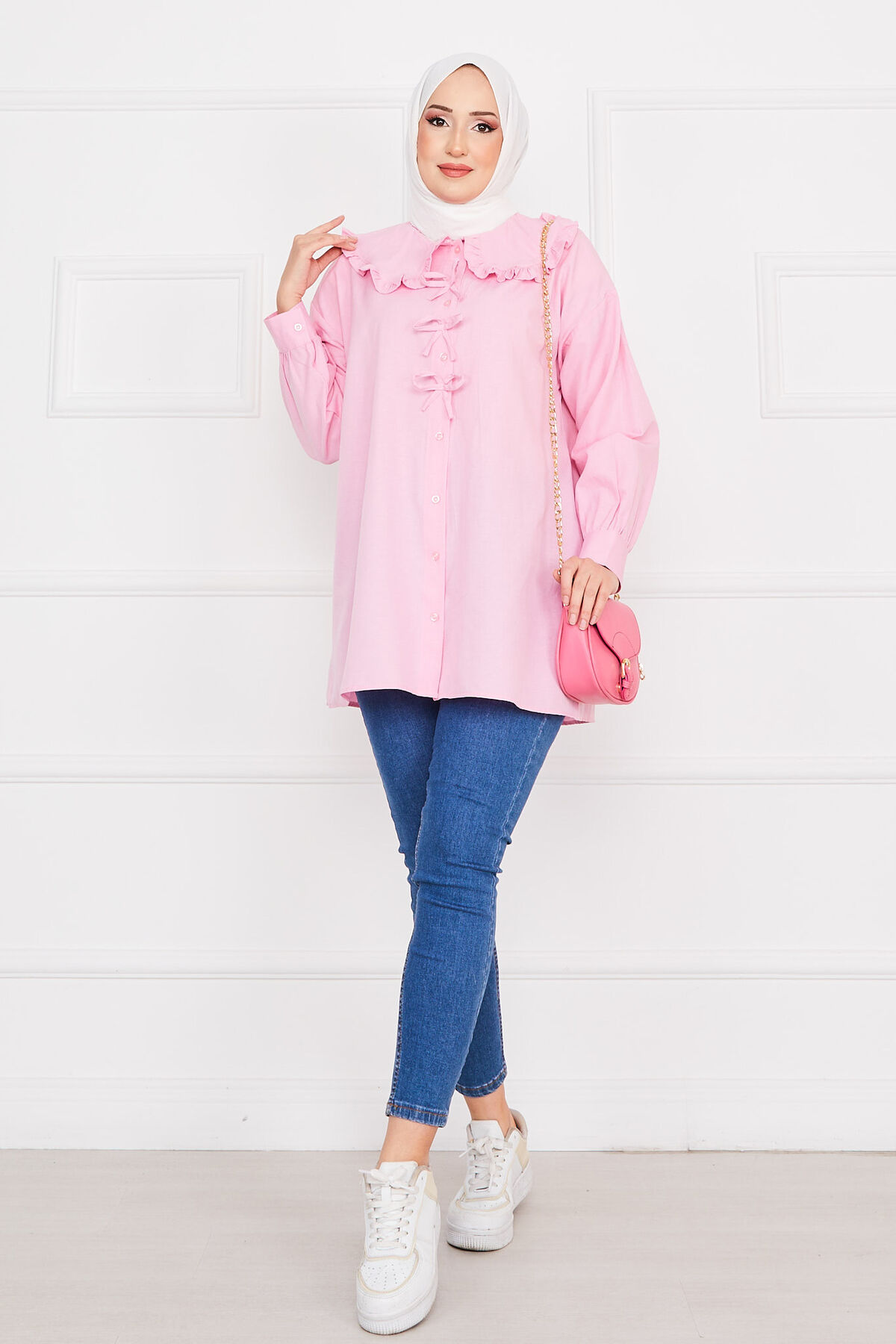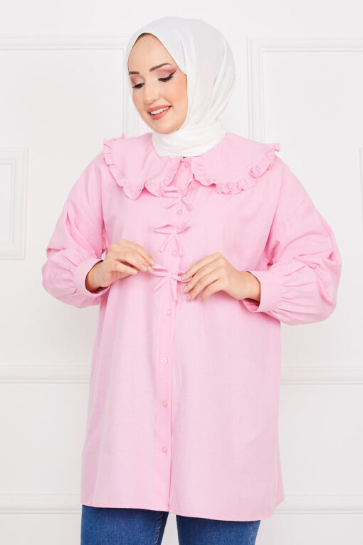 المنتج موسمي. تونيك بأزرار أمامية، وتفاصيل فيونكة، وياقة كشكشة للأطفال. الطول: 76 سم، قد يختلف من 1 إلى 3 سم حسب مرونة المنتج. مواصفات القماش: مصنوع من قماش البوبلين. المنتج متوافق مع المقاسات 38-40-42-44. مقاسات العارضة: مقاس 38 / الطول 1.68 سم / الورك 90 سم / الخصر 77 سم / الصدر 90 سم. تعليمات الغسيل: يُغسل من الداخل على درجة حرارة 30 درجة مئوية (أقل درجة حرارة). قد يختلف لون المنتج بسبب التصوير. تونيك أنيق ومريح، يمكنكِ تنسيقه بسهولة في حياتكِ اليومية، سيناسبكِ تمامًا وسيكون قطعتكِ المفضلة.