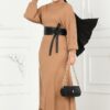 المنتج موسمي. المنتج عبارة عن طوق مهيمن. يوجد سحاب في الخلف لسهولة الاستخدام. الأكمام لها تفاصيل ملزمة.