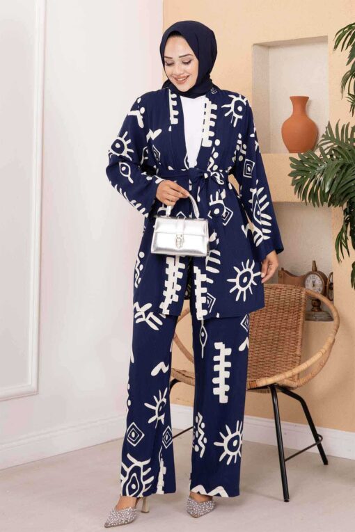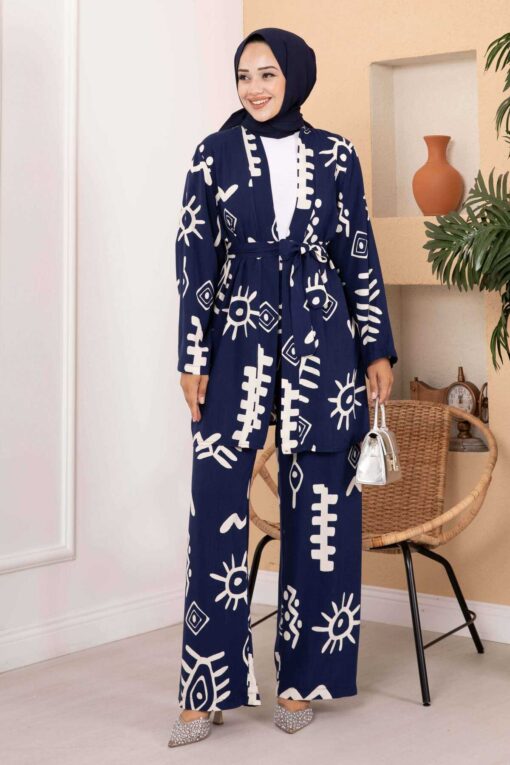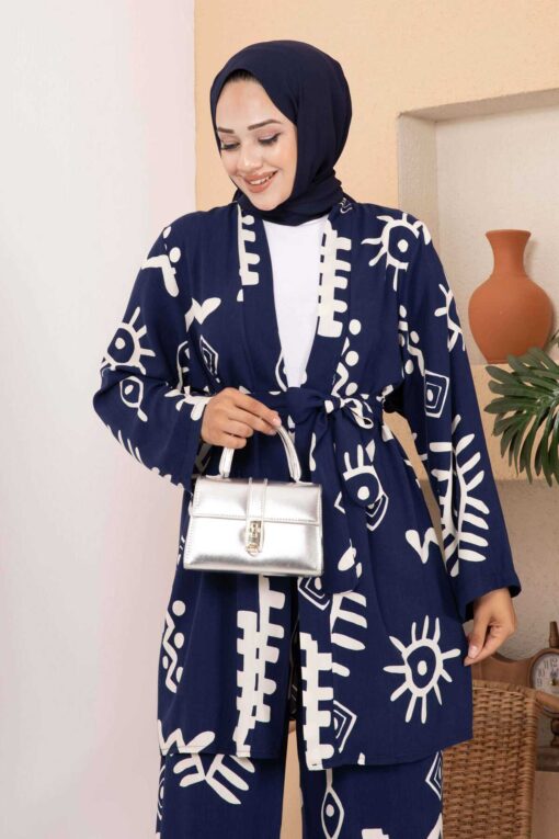 المنتج موسمي. يتكون المنتج من قطعتين: الكيمونو والبنطلون. يحتوي خصر الكيمونو على حزام متحرك. يتميز البنطلون بخصر مطاطي وهو بدلة مريحة للغاية الطول: كيمونو 85 سم البنطلون: 105 سم مميزات القماش: مصنوع من قماش الفسكوز نظرًا لأن المنتج مناسب تمامًا، فمن المستحسن طلب المقاس الذي تستخدمه عادةً 38 / الارتفاع 1.68 سم / الأرداف 90 سم / الخصر 77 سم / الصدر 90 سم تعليمات الغسيل: يجب أن يتم الغسيل من الداخل إلى الخارج عند درجة حرارة 30 درجة (أدنى درجة). قد يكون هناك اختلاف في لون المنتج بسبب استخدام الشال في هذا المنتج