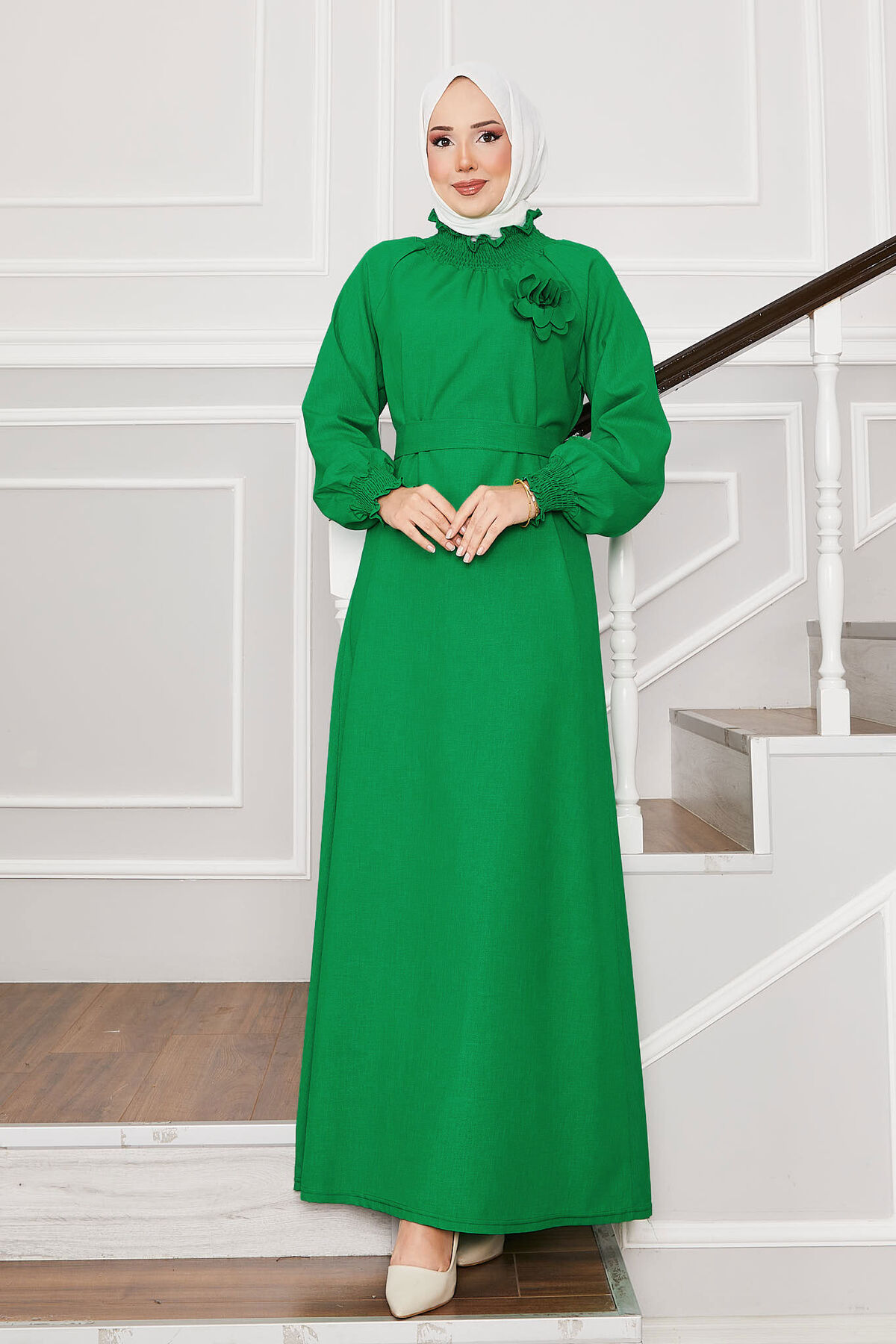 المنتج موسمي. يتم تثبيت الياقة وأساور الأكمام بحزام قابل للإزالة، كما يمكن إزالة دبوس الزهرة الموجود عليه. إنه غير مبطن ولا يظهر الجزء الداخلي. الطول: 143 سم. (قد يكون هناك مرونة في الطول من 1 إلى 3 سم). ميزة القماش: مصنوع من قماش منسوج قطريًا. قياسات الموديل: الجسم 38 / الارتفاع 1.68 سم / الوركين 90سم / الخصر 77 سم / الصدر 90سم تعليمات الغسيل: يجب غسله مقلوبًا على درجة حرارة 30 (أدنى درجة). قد يختلف لون المنتج بسبب التصوير. 1 مقاس بين 38-40، 2 مقاس بين 42-443، 46-484 و50-52. الموسم الجديد من الموضة أسطوري… تم إنتاجه مناسبًا للحجاب بمظهره السهل الاستخدام والكاجوال والأنيق. لا يكشف عن خطوط جسمك. سيجعلك حزام الخصر تبدو أنيقًا ونحيفًا. نتمنى لكم تجربة تسوق ممتعة.