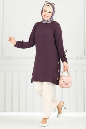 تونيك حجاب بفتحة وأزرار – نيلي فاتح
