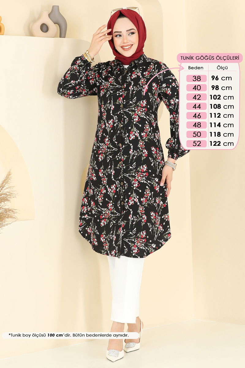 تونيك فيسكوز بنمط الزهور هو منتج حجاب يمكنك استخدامه بشكل مريح في جميع فصول السنة. بفضل نسيج الفيسكوز الناعم وتصميم ياقة القميص وتفاصيل الأزرار الأمامية، فإنه يوفر استخدامًا أنيقًا وعمليًا. هذا القميص الذي يُنصح بغسله يدويًا، خفيف ومريح بفضل بنيته غير المبطنة. تعتبر الأصفاد مرنة، مما يوفر تجربة ارتداء سهلة. المنتج الموجود على الموديل هو مقاس 38.