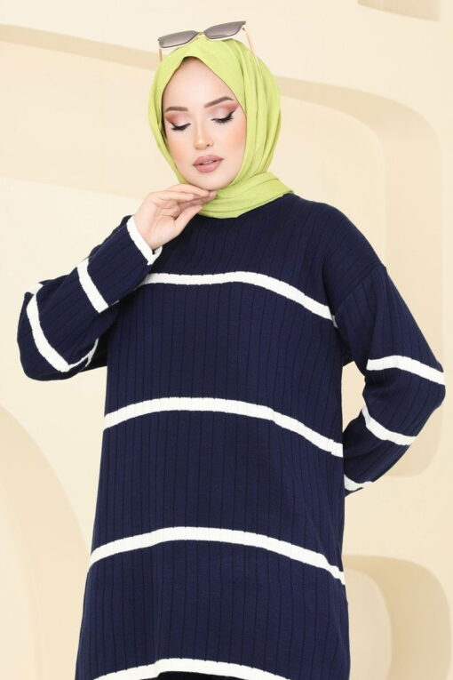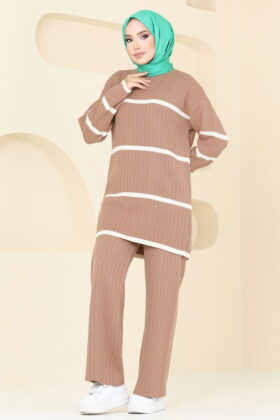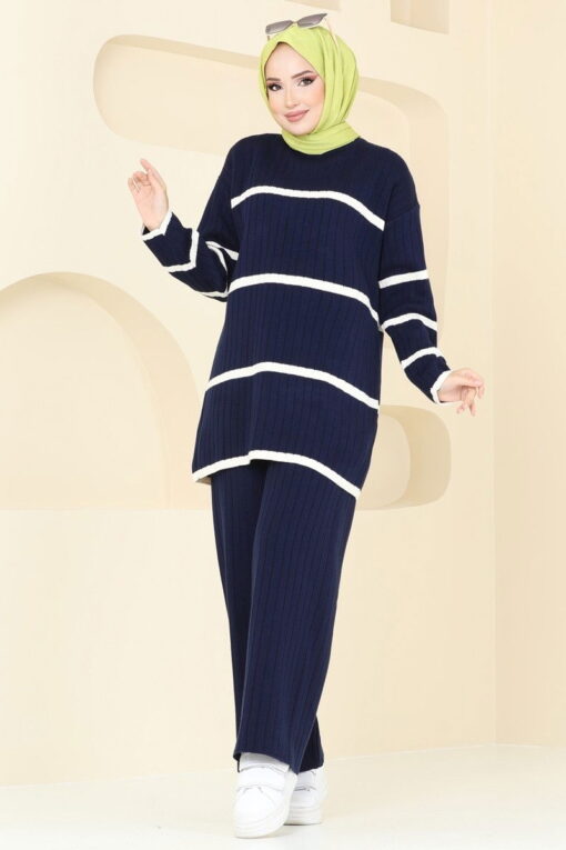 مجموعة التريكو المخططة هي منتج حجاب نموذجي. يمكن استخدامه في فصلي الخريف والشتاء. يمكن غسلها عند 30 درجة دون كتابة. (غسيل لطيف) مصنوع من نسيج التريكو. المنتج عبارة عن رقبة دائرية. إنه غير مُبطن. (المنتج الموجود في العارضة هو المقاس القياسي.) الارتفاع: 165 سم، الصدر: 80 سم، الخصر: 68 سم، الأرداف: 96 سم، الوزن: 54 كجم. خصر البنطال مرن.