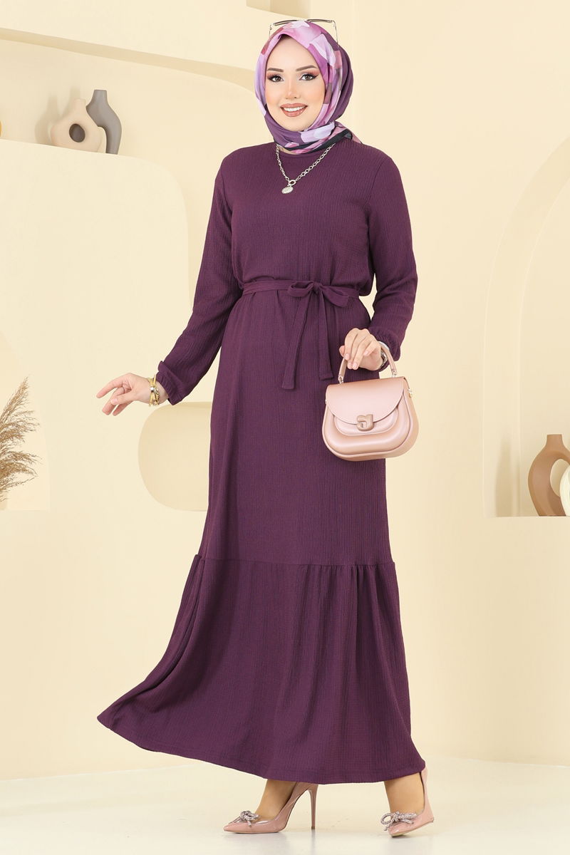 فستان ذو أكمام مطاطية هو نموذج حجاب يمكنك اختياره بسهولة في كل موسم. هذا الفستان، الذي يمكن غسله بدرجة حرارة 30 درجة مئوية في برنامج غسيل رقيق، مصنوع من قماش الكريب المقاوم للتجاعيد. إنه يوفر مظهرًا عصريًا مع رقبة دائرية وتصميم غير مبطن. يتم تقديم الحجم M كمثال ويتم ارتداء المنتج فوق الرأس. يحتوي الحزام على أطراف مخيطة لمنع الرفرفة واستخدامه اختياري. تم تصميم الأصفاد باستخدام المطاط.