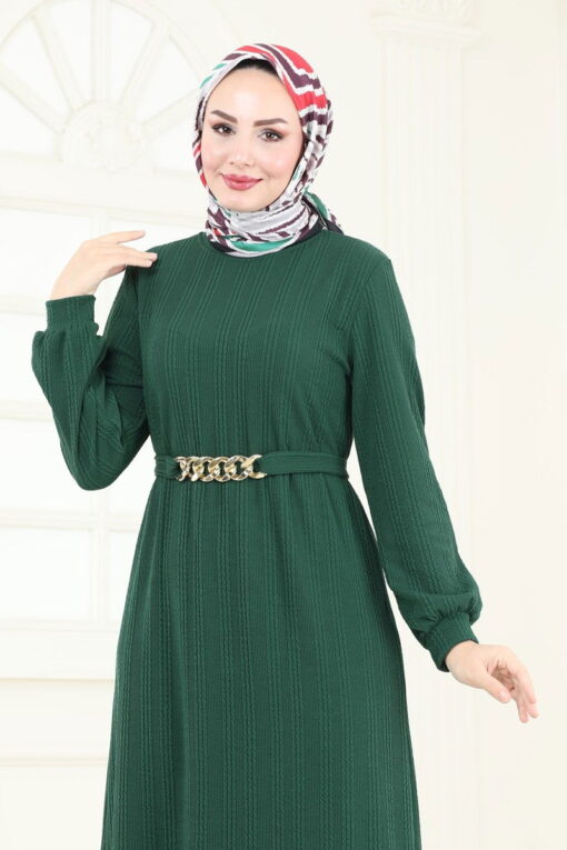 نموذج فستان الشتاء بحزام السلسلة هو منتج للحجاب. يمكن استخدامه في فصلي الخريف والشتاء. يمكن غسلها عند 30 درجة دون كتابة. (غسيل رقيق) وهو مصنوع من قماش اوجير. المنتج عبارة عن طوق نصف القاضي. وهو غير مبطن، ويلبس من الرأس. يتم خياطة السلسلة على الحزام. لمنع الحزام من الرفرفة، يتم خياطة كلا الطرفين ويترك الجزء الأوسط فارغًا (غير مخيط). الحزام متضمن في المنتج، ولا يجوز استخدامه اختياريًا.