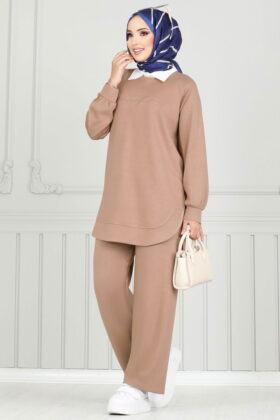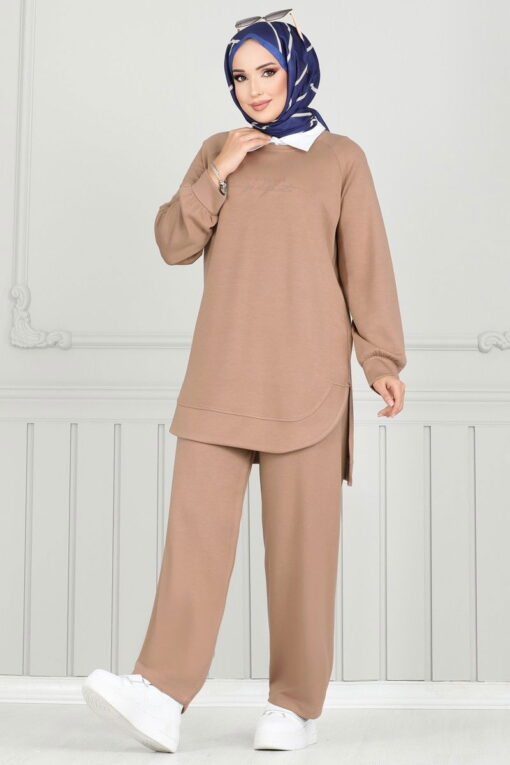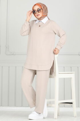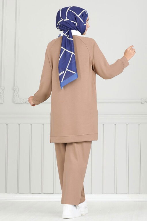 تفاصيل المنتج: إنه منتج أزياء الحجاب للموسم الجديد. المنتج عبارة عن رقبة دائرية. التونيك به فتحات جانبية. غير مُبطن. خصر البنطال مرن. قد تكون هناك اختلافات في درجة لون المنتج بسبب التصوير الفوتوغرافي.