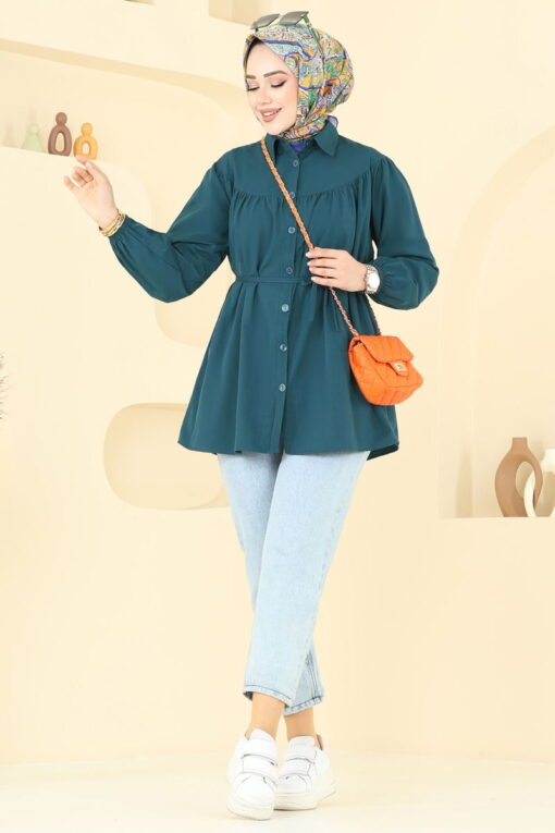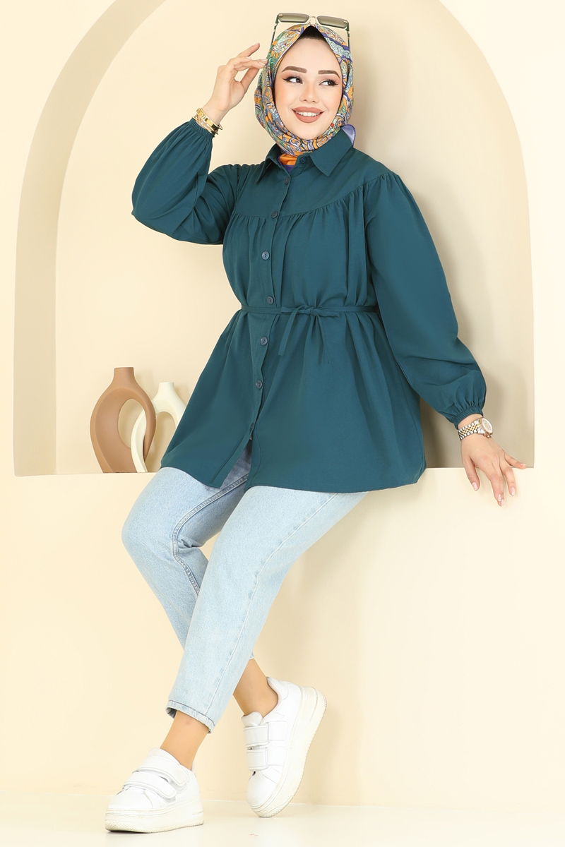 تونيك الحجاب ذو الخصر المربوط هو منتج حجاب مصنوع من قماش البوبلين الذي يمكن استخدامه بشكل مريح في جميع فصول السنة. يمكن غسله على درجة حرارة 30 مع الغسيل الدقيق. يمنحك مظهرًا كلاسيكيًا وحديثًا مع طوق القميص وتصميم الأزرار الأمامية. فهو خفيف ومفيد بفضل بنيته غير المبطنة. يمكن استخدام الحزام الذي يأتي مع المنتج بشكل اختياري والأصفاد مرنة مما يوفر الراحة. هذا القميص الذي يمكنك اختياره للمناسبات اليومية والخاصة، يوفر الأناقة والراحة معًا.