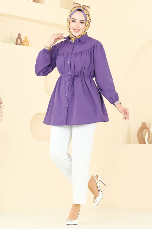 تونيك الحجاب ذو الخصر المربوط هو منتج حجاب مصنوع من قماش البوبلين الذي يمكن استخدامه بشكل مريح في جميع فصول السنة. يمكن غسله على درجة حرارة 30 مع الغسيل الدقيق. يمنحك مظهرًا كلاسيكيًا وحديثًا مع طوق القميص وتصميم الأزرار الأمامية. فهو خفيف ومفيد بفضل بنيته غير المبطنة. يمكن استخدام الحزام الذي يأتي مع المنتج بشكل اختياري والأصفاد مرنة مما يوفر الراحة. هذا القميص الذي يمكنك اختياره للمناسبات اليومية والخاصة، يوفر الأناقة والراحة معًا.