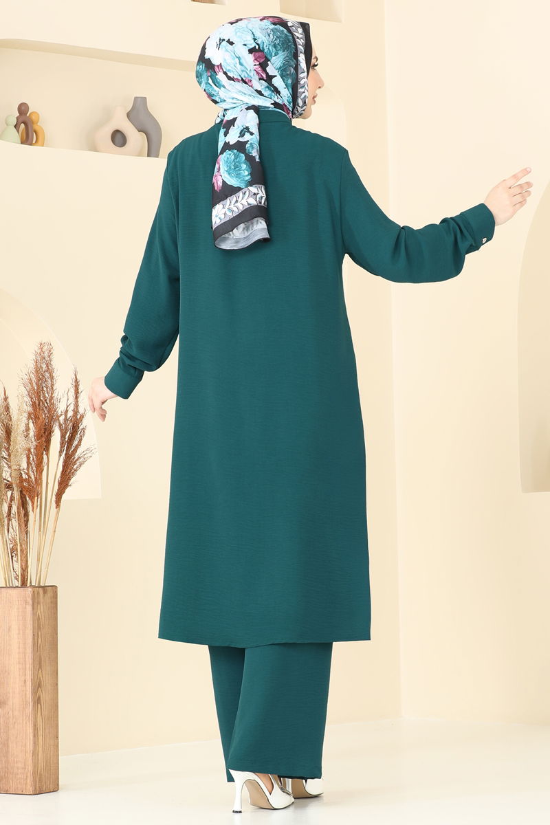 بدلة الحجاب ذات الأزرار المخفية هي منتج حجاب مصمم بعناية يمكنك استخدامه بشكل مريح في جميع المواسم. يوفر قماش Aerobin تجربة مريحة بفضل خفته وبنيته القابلة للتنفس. يتميز هذا المنتج برقبة دائرية وأزرار مخفية ويأتي مع سترة ذات شق جانبي وبنطلون خصر مرن. تتميز أزرار الأكمام بأنها نشطة وملائمة للغسيل الدقيق. تصميمها العصري والأنيق يسمح لك بالحفاظ على أناقتك في أي بيئة.