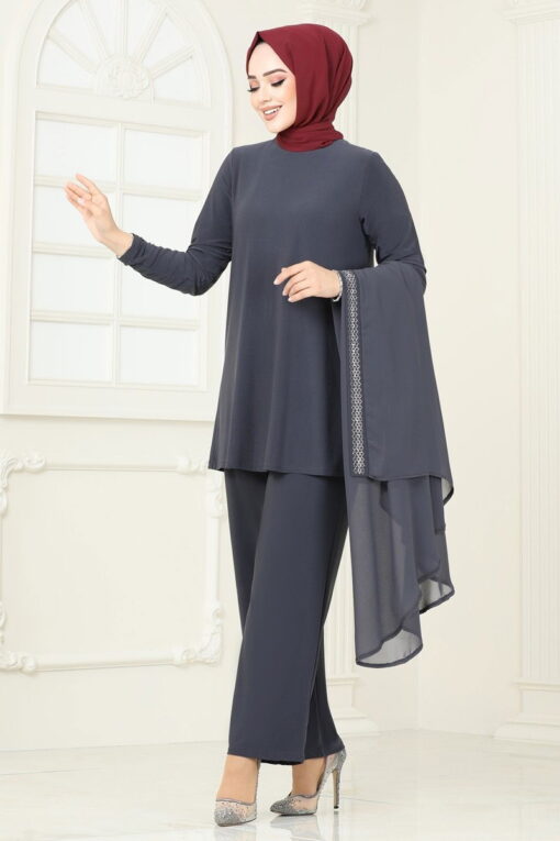 تفاصيل المنتج: إنه منتج أزياء الحجاب للموسم الجديد. يتم ارتداء السترة من الرأس. المنتج عبارة عن رقبة دائرية. إنه غير مُبطن. يتم لصق الحجارة. خصر البنطال مرن. الكفة مرنة. قد تكون هناك اختلافات في درجة لون المنتج بسبب التصوير الفوتوغرافي.