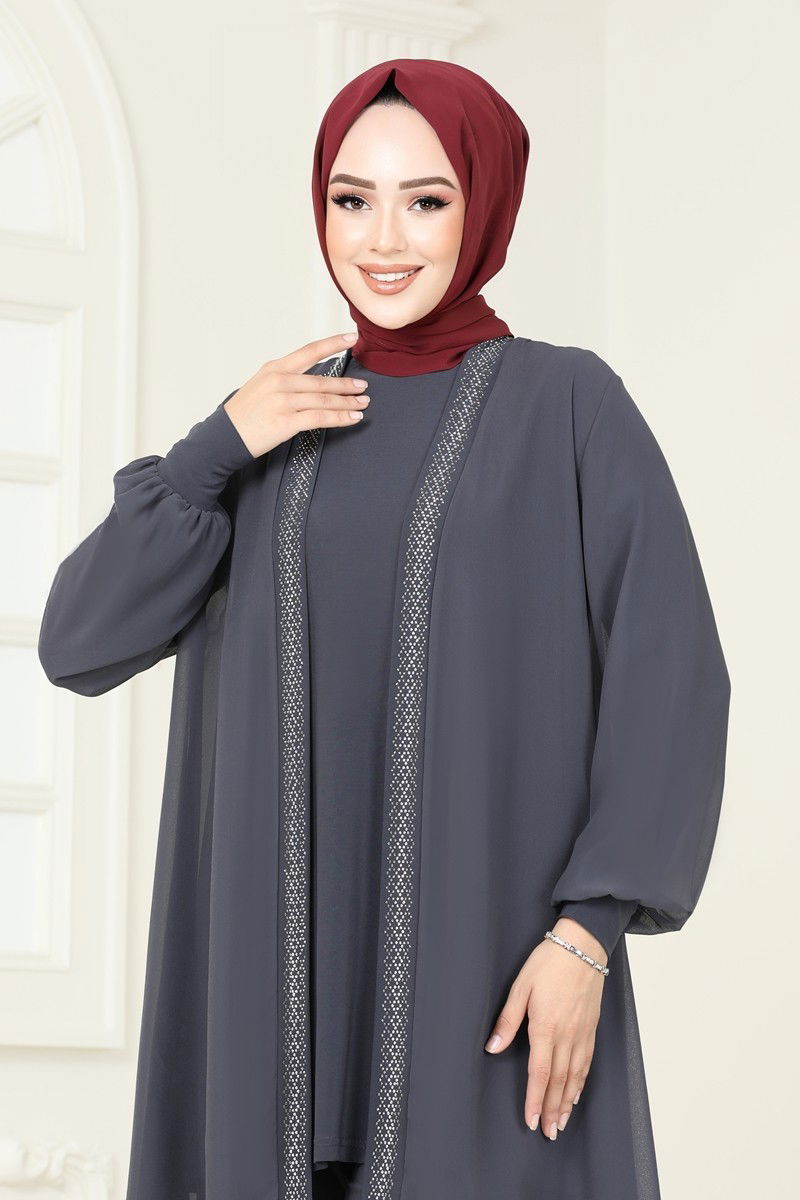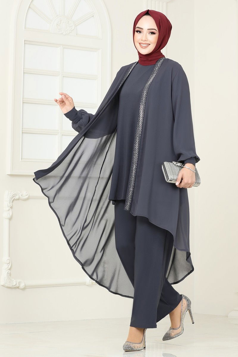 البدلة الثلاثية ذات التفاصيل الحجرية هي منتج حجاب نموذجي. يمكن استخدامه في موسم الفصول الأربعة. تنظيف جاف فقط. وهي مصنوعة من قماش الشيفون ساندي من الدرجة الأولى. المنتج عبارة عن رقبة دائرية. إنه غير مُبطن. (المنتج الموجود في العارضة هو مقاس 38.) يتم ارتداء السترة من الرأس. يتم لصق الحجارة. خصر البنطال مرن.