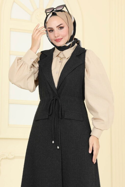 تفاصيل المنتج: إنه منتج أزياء الحجاب للموسم الجديد. المنتج لديه طوق مزدوج الصدر. إنه غير مُبطن. السترة غير متضمنة في المنتج. تم عمل مجموعة مثال مع سترة لإظهار الاستخدام المقصود للمنتج. تفاصيل الجيب هي الملحقات. خصر البنطال مرن. يتميز بخصر ذو أربطة. قد تكون هناك اختلافات في درجة لون المنتج بسبب التصوير الفوتوغرافي.