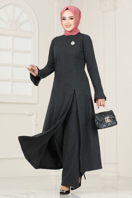 تفاصيل المنتج: إنه منتج أزياء الحجاب للموسم الجديد. المنتج عبارة عن رقبة دائرية. سترة لديها شق جانبي. إنه غير مُبطن. لا يتم تضمين الملحقات في المنتج. خصر البنطال مرن. لديها الأكمام دولاب الموازنة. قد تكون هناك اختلافات في درجة لون المنتج بسبب التصوير الفوتوغرافي.