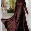 فستان متعرج مزين باللؤلؤ أحمر كلاريت