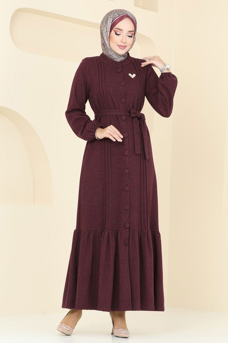 نموذج فستان متعرج مفصل الأنابيب هو منتج الحجاب. يمكن استخدامه في فصلي الخريف والشتاء. يجب غسله على درجة حرارة 30 درجة دون عصر. وهي مصنوعة من نسيج متعرج من الدرجة الأولى. المنتج عبارة عن طوق نصف القاضي. المنتج مزود بأزرار في الأمام. إنه غير مُبطن. (المنتج الموجود في الموديل هو مقاس 38.) لمنع الحزام من الرفرفة، يتم خياطة كلا الطرفين، ويترك الجزء الأوسط فارغًا (غير مخيط). الحزام متضمن في المنتج، ولا يجوز استخدامه اختياريًا. الكفة مرنة.