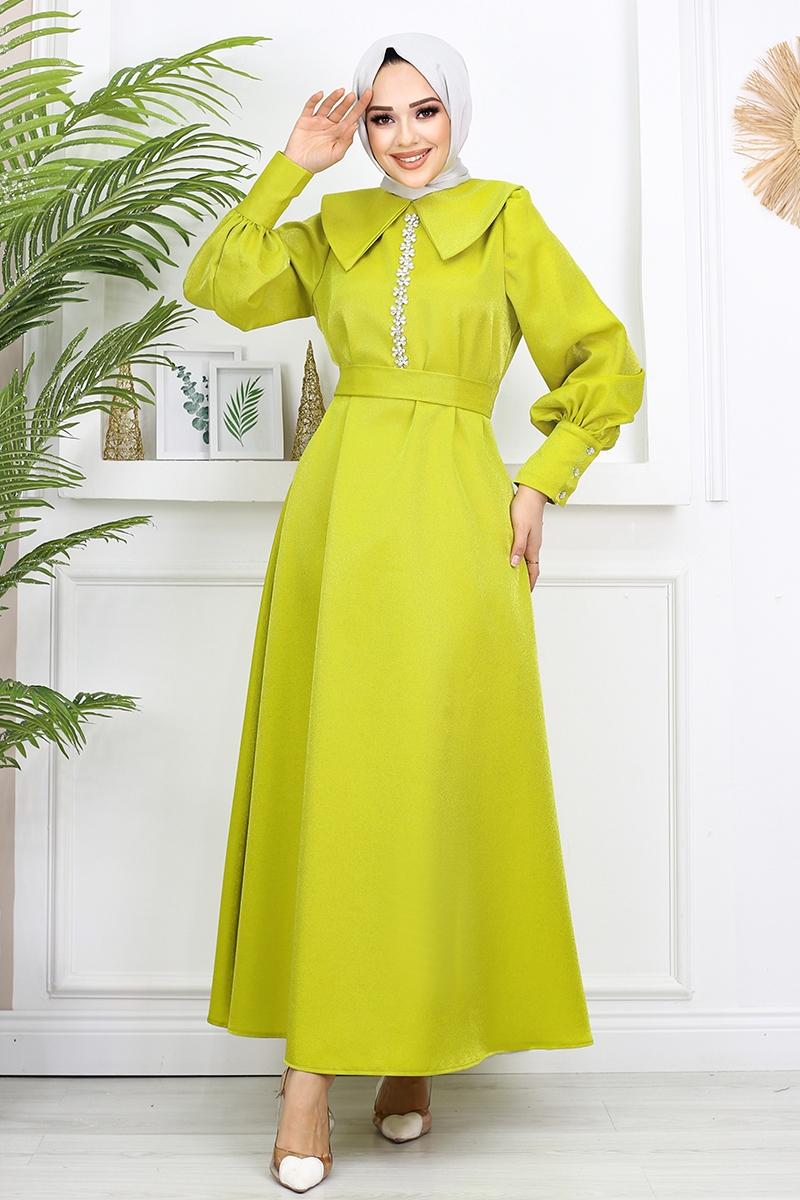 مميزات Vizyon من فستان سهرة ستان لامع مع حزام