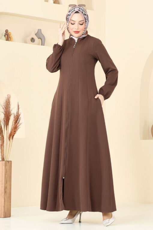 عباية بسحاب أمامي هي قطعة ملابس حجاب أنيقة مصنوعة من قماش قطني يمكنك ارتداؤها بشكل مريح في جميع الفصول الأربعة. من السهل الحفاظ عليه بفضل خاصية الغسيل الدقيق بدرجة حرارة 30 درجة. يتميز هذا الموديل بتصميم ياقة نصف ماندرين، وهو غير مبطن ويحتوي على سحاب مفيد في المقدمة. كما أنها تحتوي على تصميم جيب للاستخدام العملي. الموديل ترتدي مقاس 38، طولها 167 سم، مقاس صدرها 90 سم، مقاس خصرك 70 سم، مقاس وركها 100 سم، ووزنها 59 كجم.