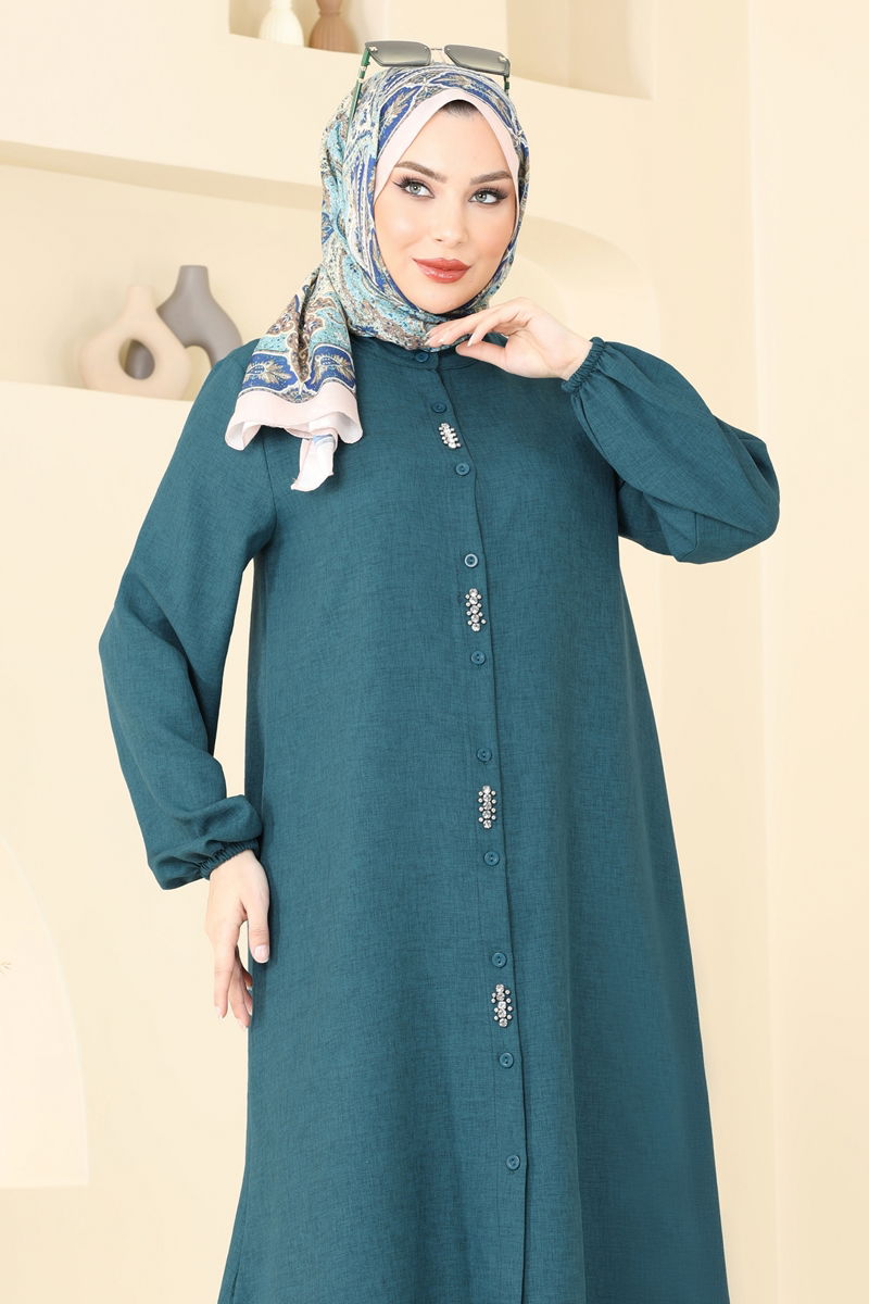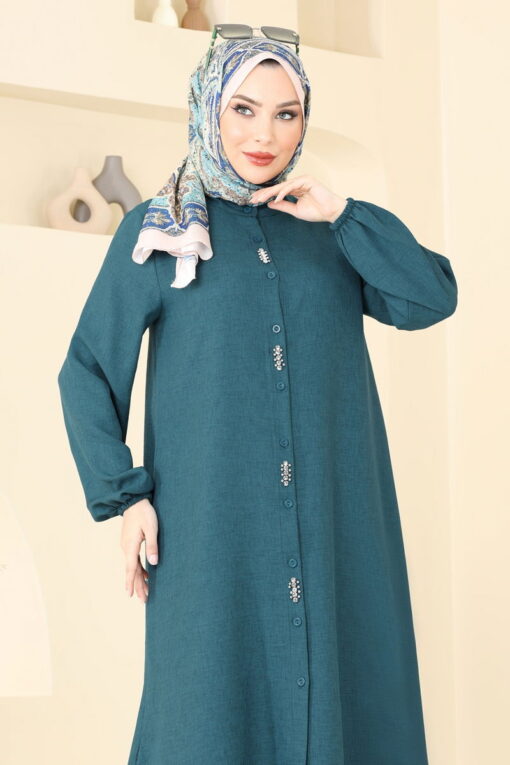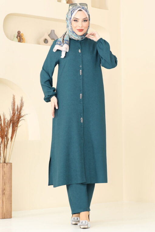 بتصميمها العصري والأنيق، تضيف بدلة Stoned Front Linen، التي يمكنك ارتداؤها في جميع فصول السنة، نفسًا جديدًا إلى ملابس الحجاب. تتميز هذه البدلة بتصميم مريح بفضل قماش الكتان صوفيا، وتتكون من طوق قميص وسترة بأزرار. يحتوي القميص على تفاصيل شق على الجانبين، في حين أن خصر البنطلون مرن لزيادة الراحة. تتميز هذه المجموعة بأناقتها المبهرة بتفاصيلها الحجرية، ويجب تنظيفها بغسيل لطيف على درجة حرارة 30 درجة.
