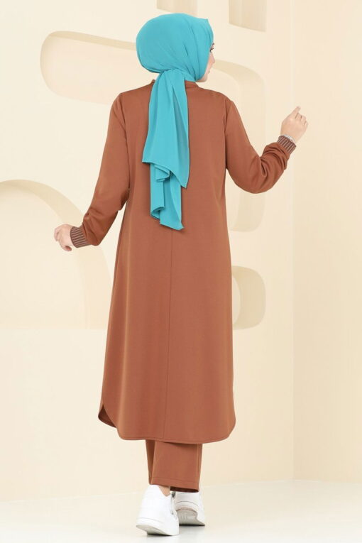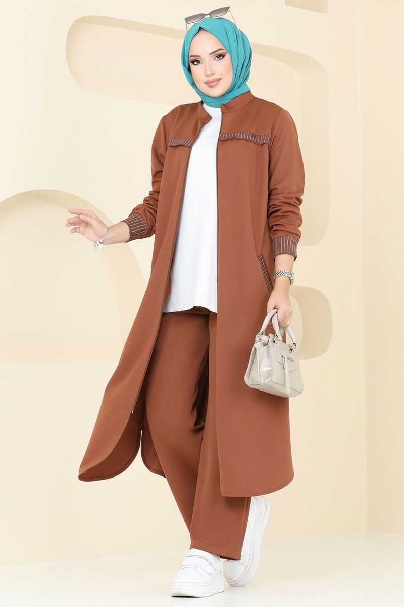 بدلة مزخرفة بسحاب أمامي باللون البني