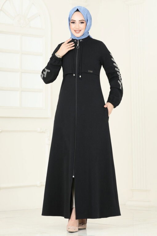 إنه يجذب الانتباه بتصميمه العصري، مما يسمح لك بقضاء أشهر الخريف والشتاء بأناقة. هذه العباية، التي يمكن تنظيفها بالغسيل اللطيف على درجة حرارة 30 درجة، مصنوعة من قماش التويد. إنه يوفر مظهرًا أنيقًا مع ياقة نصف دائرية، ويوفر استخدامًا عمليًا مع تفاصيل السحاب الأمامي. في حين أنه يضيف لمسة جمالية مع تفاصيل التطريز والأربطة، فإنه يوفر استخدامًا عمليًا مع تصميم جيبه وأكمامه المطاطية. هذه العباءة، التي يمكنك اختيارها بسهولة أثناء النهار والمناسبات الخاصة، ستكمل أناقتك في ملابس الحجاب.