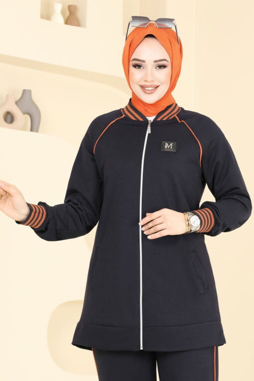 بدلة حجاب بتفاصيل شعار أزرق داكن