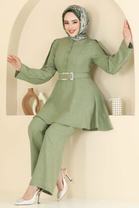 بدلة كتان نصف أزرار؛ إنه خيار أنيق مصنوع من قماش الكتان صوفيا الذي يمكن للمرأة المحجبة استخدامه بشكل مريح في جميع فصول السنة. تتميز هذه السترة بتصميمها الذي يسمح بالغسيل الدقيق، وقبة دائرية، وإغلاق أمامي بنصف زر، وتصميم غير مبطن. بالإضافة إلى ذلك، فإن خصر البنطال مرن، مما يجعله أسهل في الارتداء. يمكن استخدام الحزام المرفق مع السترة بشكل اختياري. يتم خياطة أطراف الحزام لمنع الرفرفة.