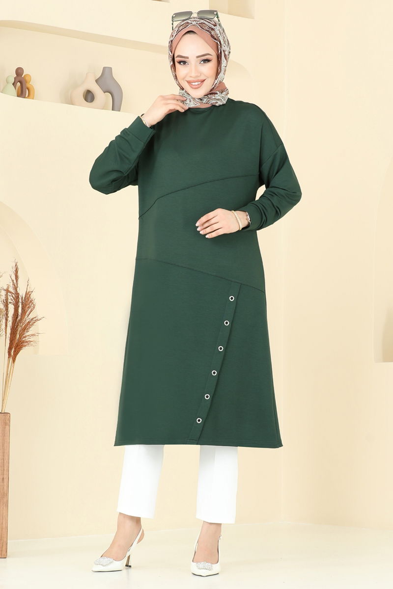 يُعد التونيك المرصع بالتفاصيل منتجًا مثاليًا للحجاب يمكنك استخدامه بسهولة في المواسم الانتقالية. تم تصميم هذا القميص بتفاصيل مرصعة بشكل مذهل، وهو مصنوع من قماش مزدوج الخيط لضمان راحتك طوال الفصول الأربعة. يتميز هذا المنتج، الذي يمكن غسله في وضع الغسيل الدقيق على درجة حرارة 30 درجة، أيضًا بإمكانية استخدامه العملي. تتميز هذه السترة بلمسة عصرية بفضل رقبتها الدائرية، كما أنها خفيفة ومريحة بفضل بنيتها غير المبطنة. يمكنك تجربة الأناقة والراحة في أي وقت من خلال الاحتفاظ بهذا القميص في خزانة ملابسك، مما سيجعلك تبدو أنيقًا وأنيقًا في أي بيئة.