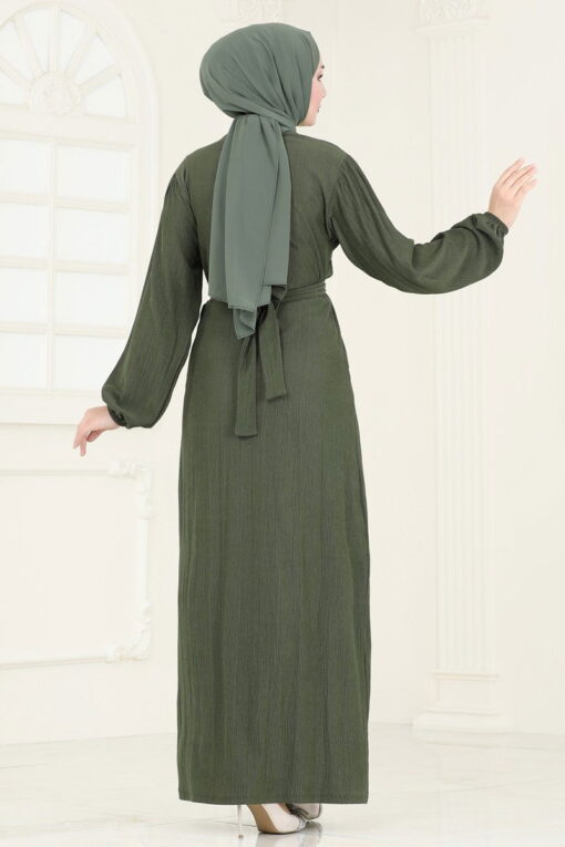 تفاصيل المنتج: إنه منتج أزياء الحجاب للموسم الجديد. يتم ارتداء الفستان من الرأس. المنتج عبارة عن رقبة دائرية. إنه غير مُبطن. الحزام متضمن في المنتج، ولا يجوز استخدامه اختياريًا. الكفة مرنة. قد تكون هناك اختلافات في درجة لون المنتج بسبب التصوير الفوتوغرافي.