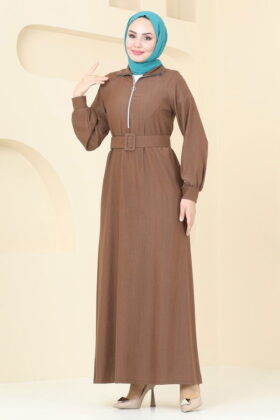 فستان بحزام نصف سحاب بني
