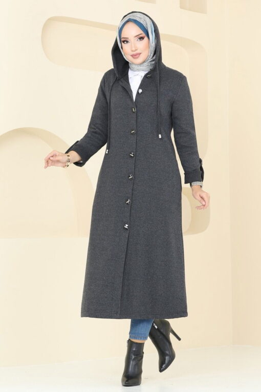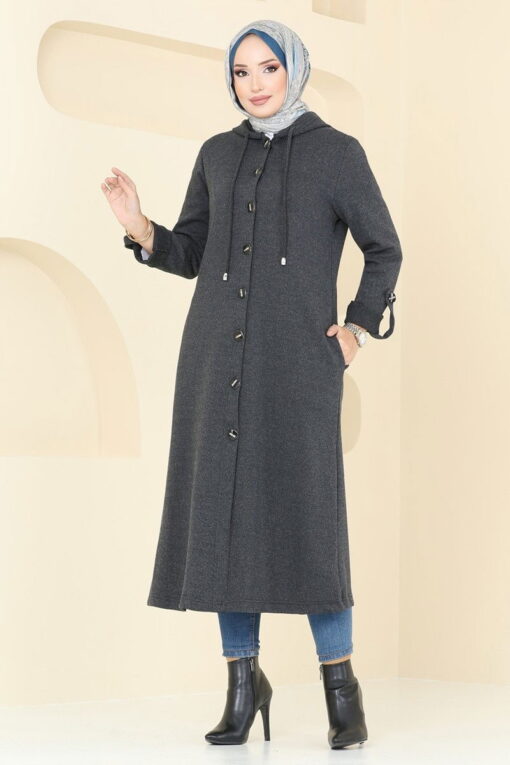 غطاء أمامي من نسيج قطني طويل بأزرار أنثراسايت
