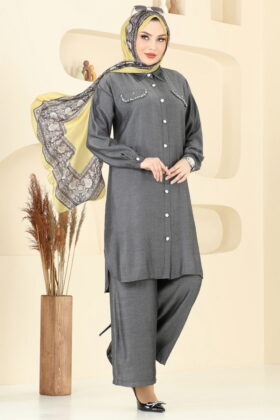 بفضل تصميمها المريح والأنيق، تعد بدلة الكتان اللؤلؤية التي يمكنك ارتداؤها في جميع فصول السنة من أبرز قطع أزياء الحجاب. هذا المنتج، الذي يمكن غسله بدرجة حرارة 30 درجة مع الغسيل الدقيق، مصنوع من قماش الدنيم التنسيل. يوفر التونيك ذو طوق القميص والأزرار الأمامية حرية الحركة مع تفاصيل الشق الجانبي. توفر السراويل استخدامًا مريحًا بفضل حزام الخصر المطاطي. تتميز هذه المجموعة بجيوب تضيف أناقة بتفاصيل اللؤلؤ، وهي مخصصة لأغراض الإكسسوارات وأزرار الأكمام نشطة. البلوزة غير متضمنة. المنتج الموجود على النموذج هو مقاس 38 ويتم تقديمه كمجموعة عينة.
