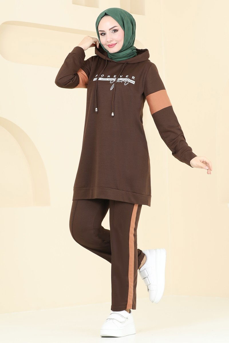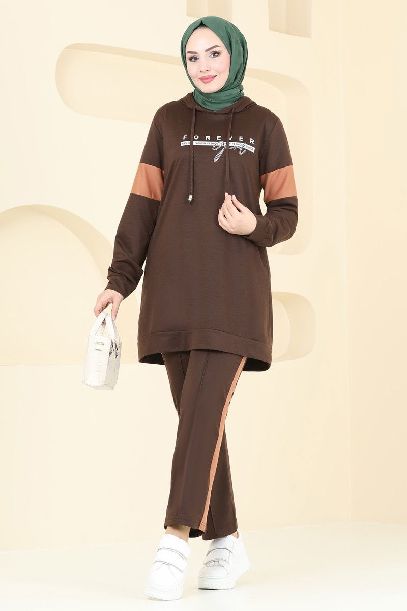 مجموعة الحجاب المطبوعة بالنص هي منتج حجاب نموذجي. يمكن استخدامه في موسم الفصول الأربعة. بالنسبة للمنتجات المطبوعة، يجب قلب المنتج من الداخل إلى الخارج وغسله وكيّه بشكل عكسي. وهي مصنوعة من نسيج خيطين. المنتج عبارة عن طوق بغطاء للرأس. إنه غير مُبطن. (المنتج الموجود في الموديل مقاس 38.) تتم طباعة التفاصيل. خصر البنطال مرن.