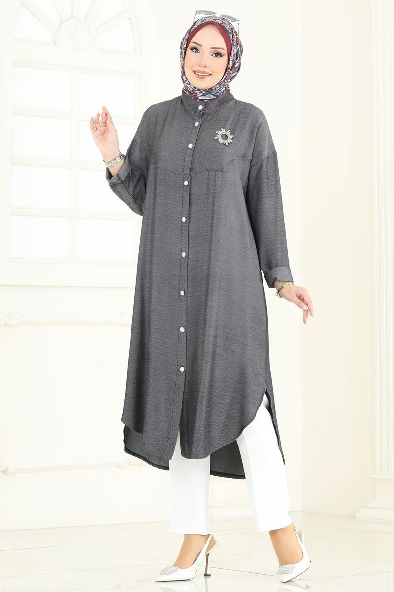 تفاصيل المنتج: إنه منتج أزياء الحجاب للموسم الجديد. المنتج عبارة عن طوق القاضي. يجب أن يكون المنتج مزررًا من الأمام. يحتوي القميص على شقوق جانبية. إنه غير مبطن. المنتج لديه رداء. المنتج لا يتضمن الملحقات. بسبب جلسات التصوير المفاهيمية، قد تكون هناك اختلافات في درجة اللون في المنتج.