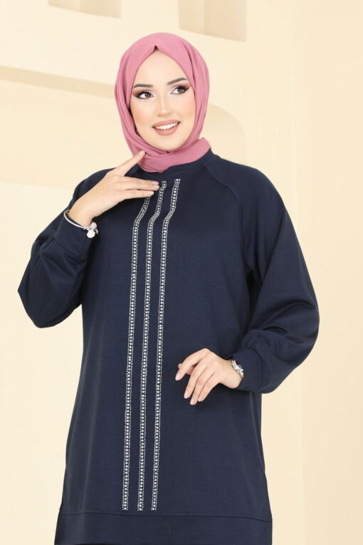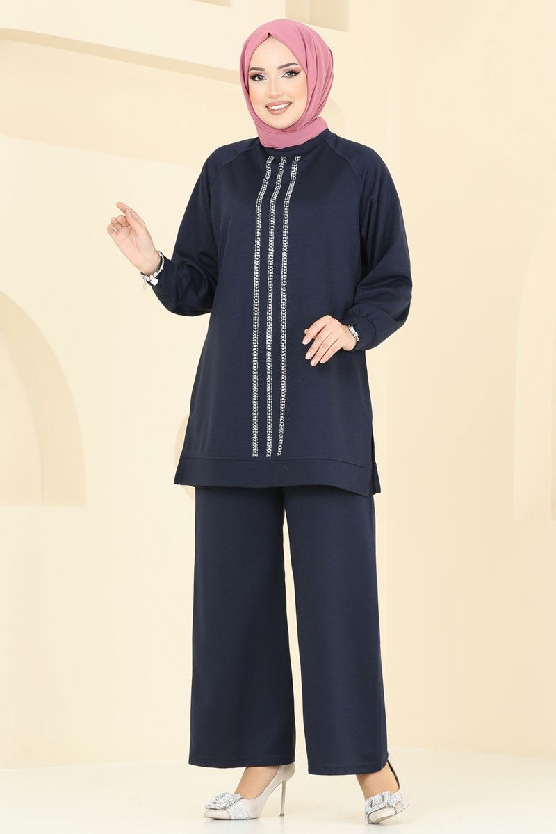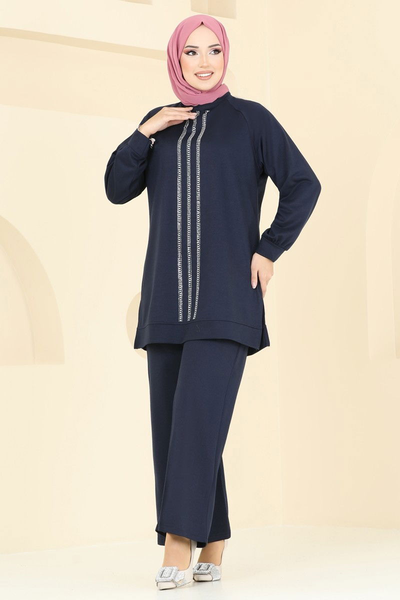 تفاصيل المنتج: إنه منتج أزياء الحجاب للموسم الجديد. المنتج عبارة عن رقبة دائرية. التونيك به فتحات جانبية. غير مُبطن. يتم لصق الحجارة. خصر البنطال مرن. قد تكون هناك اختلافات في درجة لون المنتج بسبب التصوير الفوتوغرافي.