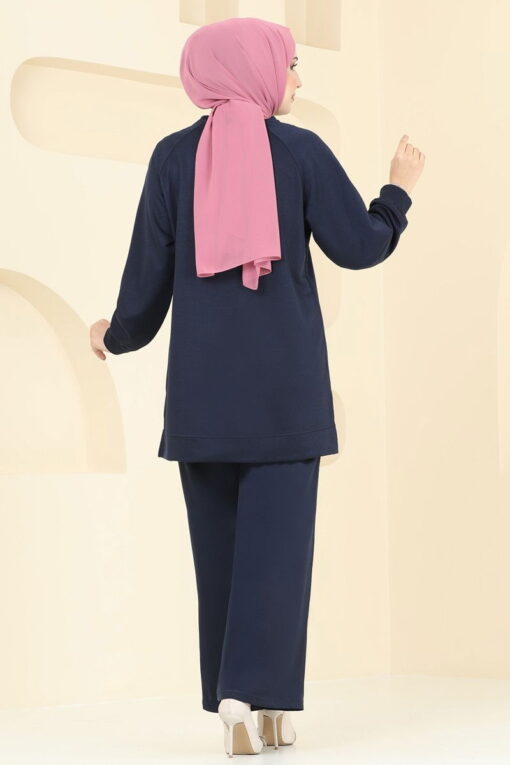 تقدم الأناقة والراحة معًا، هذه المجموعة الأنيقة ذات التفاصيل الحجرية هي نموذج للحجاب يمكنك الاستمتاع به طوال الفصول الأربعة. هذه المجموعة مصنوعة من قماش ثنائي الخيط، ويمكن غسلها على الملابس الرقيقة عند درجة حرارة 30 درجة. في حين أن تفاصيل الشق الجانبي للسترة ذات الرقبة الدائرية توفر حرية الحركة، إلا أنها تبهر بتفاصيلها الحجرية المربوطة. الخصر المرن للسراويل يزيد من الراحة. المنتج الموجود بالموديل مقاس 38 وهو اختيار أنيق لأيامك المهمة.
