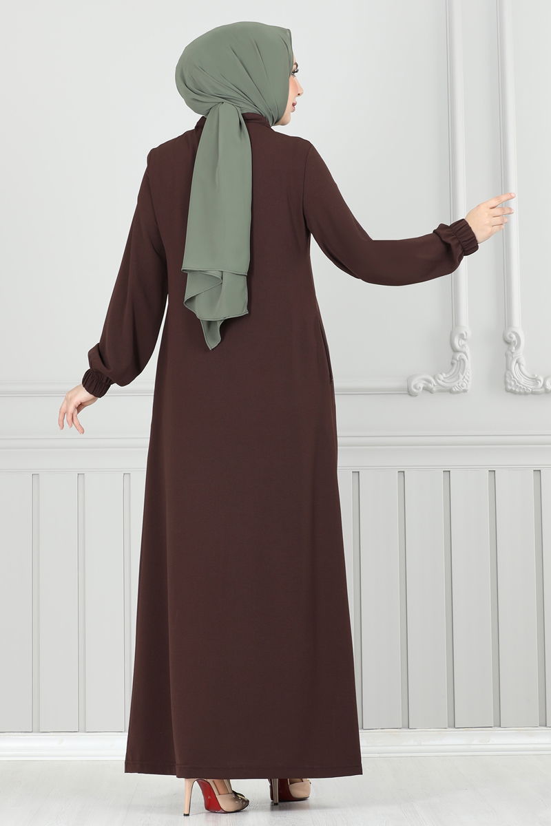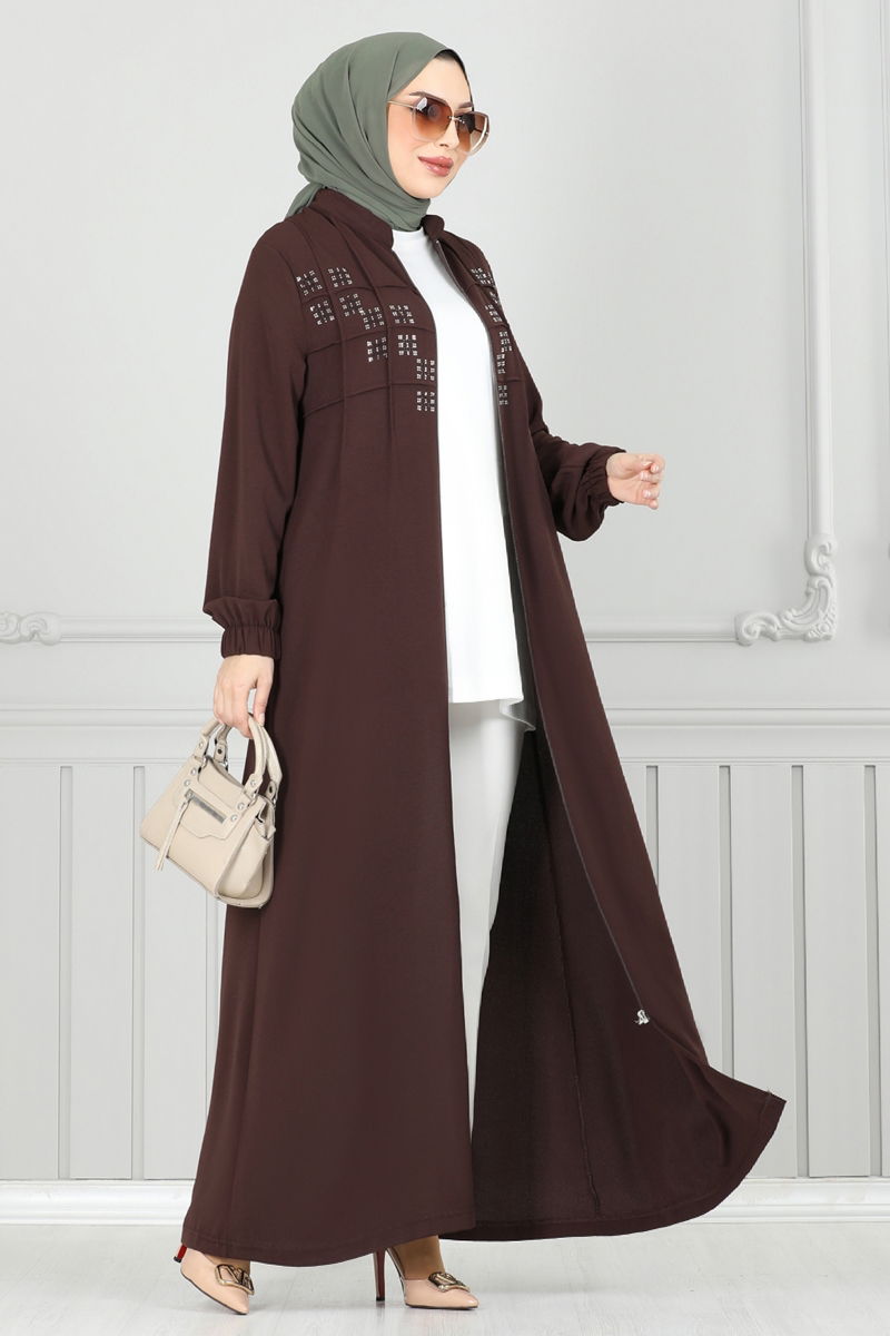 يمكن استخدام عباية الحجاب المفصلة بالأحجار بشكل مريح في جميع الفصول الأربعة مع نموذج العباءة الخاص بها. يمكن تنظيفه بغسيل لطيف على درجة حرارة 30 درجة. مصنوع من قماش الأيروبين، يتميز هذا المنتج بتصميم طوق نصف رجل. توفر العبايات غير المبطنة سهولة في الاستخدام بفضل السحاب الموجود في الجهة الأمامية. الأحجار المستخدمة في المنتج ملتصقة والأصفاد لها تصميم مرن. تتميز في كل بيئة ببنيتها الأنيقة والمفيدة. (المنتج الموجود على الموديل هو مقاس 38.)