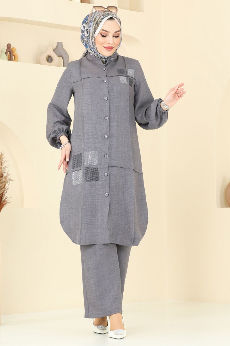 مجموعة Stone Detail Linen Set هي منتج حجاب يمكنك استخدامه بشكل مريح في جميع فصول السنة. يمكنك تنظيفه بالغسيل الدقيق بدرجة حرارة 30 درجة. مصنوع من قماش صوفيا لينين عالي الجودة ويوفر استخدامًا مريحًا. يتميز هذا القميص ذو الياقة النصف ماندرينية بمظهر عصري مع تفاصيل شق جانبي. يوفر الخصر المطاطي للبنطلون وأساور السترة ملاءمة مريحة. القميص غير مبطن والحجارة عليه ملتصقة. ستكون هذه البدلة الحجابية الأنيقة والعملية جزءًا لا غنى عنه في خزانة ملابسك.