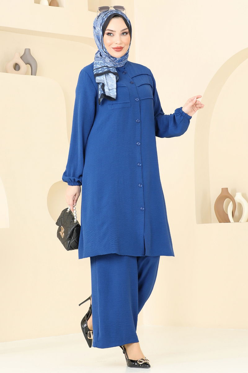 مجموعة الحجاب ذات التفاصيل المضلعة هي منتج حجاب أنيق وعصري. يمكن استخدامه بسهولة طوال الفصول الأربعة. تم تصنيع هذه البدلة باستخدام قماش الأيروبين، ويمكن غسلها بدرجة حرارة 30 درجة مع الغسيل الدقيق. إنه يوفر استخدامًا عمليًا بفضل طوق نصف الرجل وتصميم الأزرار الأمامية. هذا المنتج الذي يتمتع ببنية غير مبطنة يسمح لك بالتحرك بشكل مريح. يتكون من قطعتين تونيك وبنطلون وخصر البنطلون مطاطي. هذه البدلة التي تحتوي على جيب نشط على الصدر وأساور مطاطية، مثالية للاستخدام اليومي.