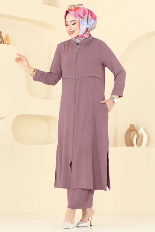 توفر بدلة الحجاب ذات السحاب الأمامي الراحة والأناقة في جميع فصول السنة مع طرازها. يوفر هذا المنتج خيار الغسيل الدقيق عند درجة حرارة 30، وهو مصنوع من نسيج هوائي قابل للتنفس. تتميز هذه البدلة بمظهر عصري مع ياقة نصف ماندرين وتفاصيل الشق، وهي خفيفة ومريحة بفضل بنيتها غير المبطنة. يوفر استخدامًا عمليًا بفضل تفاصيل السحاب الأمامي وخصر البنطلون المطاطي. هناك أيضًا جيوب مفيدة على سراويل المنتج. تتميز هذه البدلة التي يمكنك اختيارها للمناسبات اليومية والخاصة على حد سواء، بتفاصيلها العملية.
