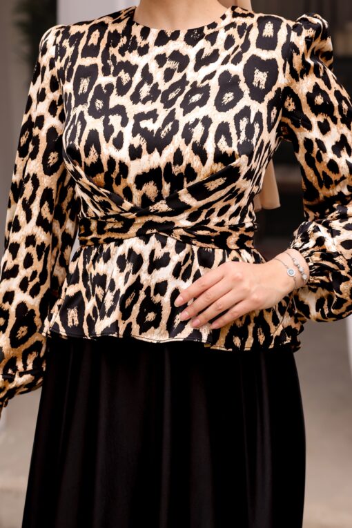 فستان سهرة من الساتان بربطة أمامية من SUAL يتميز برؤية الفهد