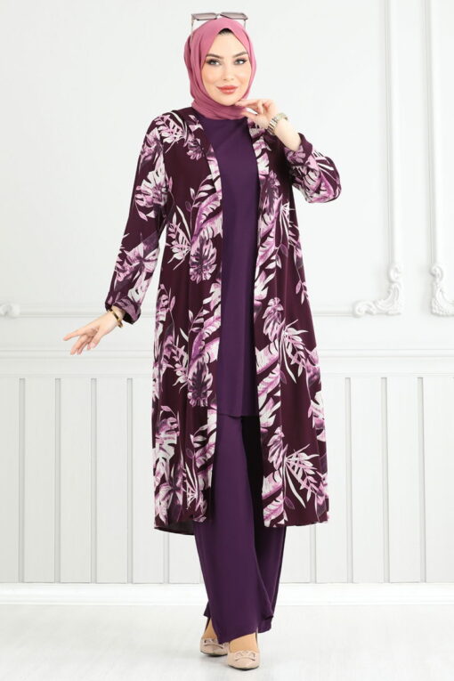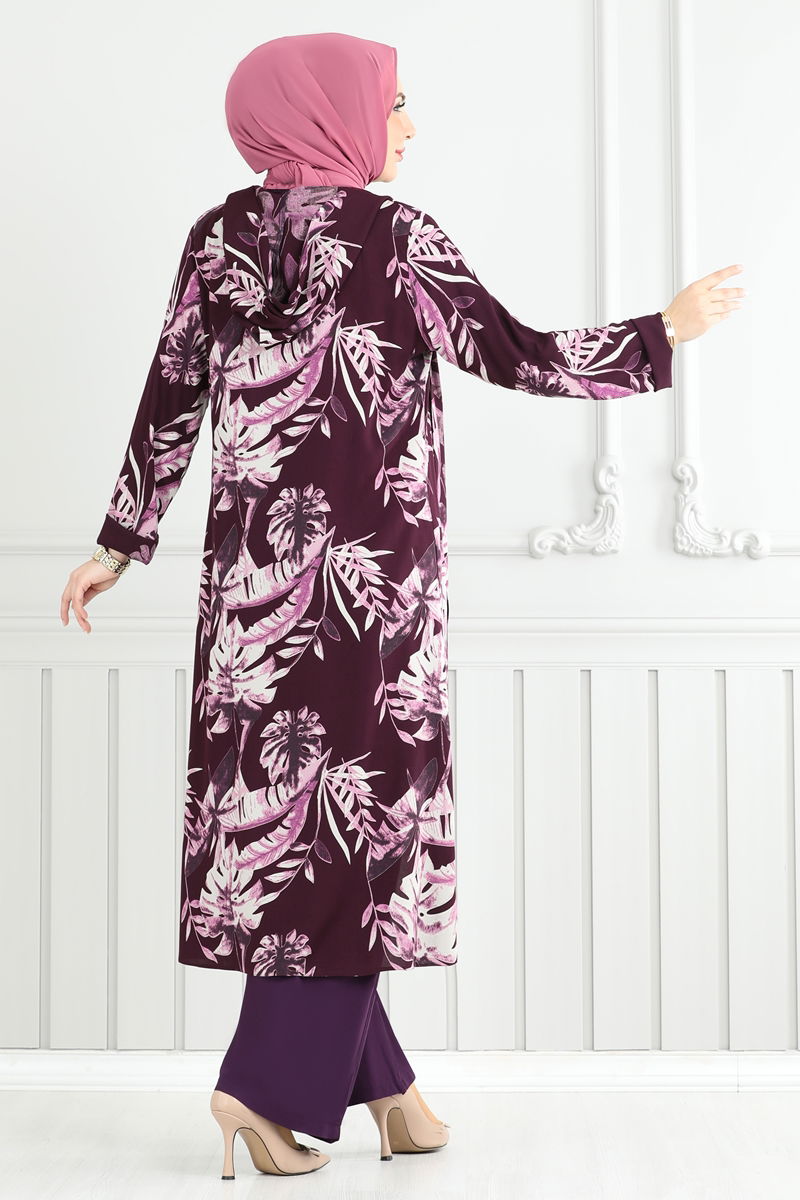 بدلة الحجاب المصنوعة من الفيسكوز المنقوشة هي منتج يوفر الراحة والأناقة في جميع المواسم. تتميز بدلة الحجاب هذه، والتي يُنصح بغسلها يدويًا، براحة عالية لأنها مصنوعة من قماش الفسكوز. يتميز بمظهر عصري مع تصميم طوق ذو غطاء للرأس وبنية غير مبطنة. تتكون المجموعة من بلوزة بدون أكمام وسروال بخصر مطاطي. تتميز هذه البدلة، التي تحتوي على تفاصيل أزرار عملية على الجزء الخلفي من البلوزة، بتفاصيلها الأنيقة.
