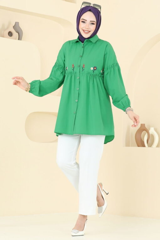تفاصيل المنتج: إنه منتج أزياء الحجاب للموسم الجديد. المنتج عبارة عن طوق قميص. يجب أن يكون المنتج مُزررًا من الأمام. إنه غير مُبطّن. تمت خياطة تفاصيل التطريز. الكفة مرنة. بسبب التصوير الفوتوغرافي المفاهيمي، قد تكون هناك اختلافات في درجة اللون في المنتج.