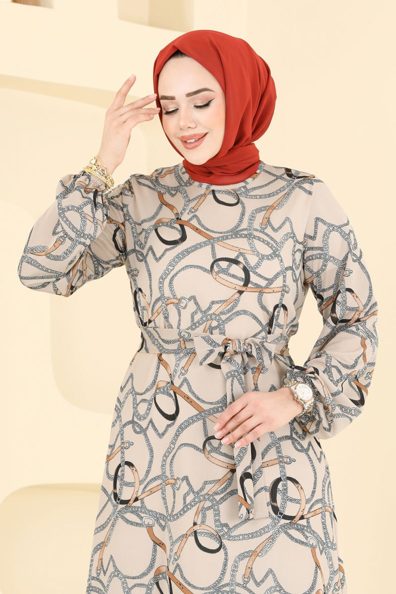 تم تصميم فستان هيلين المنقوش بالسلسلة خصيصًا لأزياء الحجاب ويمكن استخدامه بشكل مريح في جميع الفصول الأربعة. إنه يوفر التطبيق العملي بفضل ميزة إمكانية الغسيل عند درجة حرارة 30 درجة في برنامج الغسيل الدقيق. مصنوع من قماش هيلين ويتميز بتصميم رقبة دائرية. هذا الفستان غير مبطن، مما يجعله سهل الارتداء فوق رأسك. تم تصميم الحزام ليتناسب مع الفستان، حيث يتم خياطته من كلا الطرفين وتركه غير مخيط في المنتصف، مما يمنع الرفرفة. يمكن إزالة الحزام إذا رغبت في ذلك. الأصفاد مرنة والموديل مقاس 38.