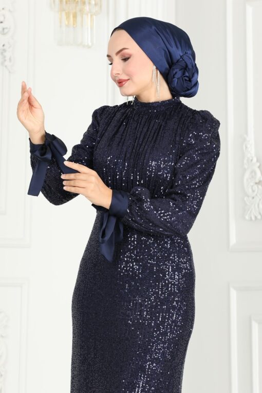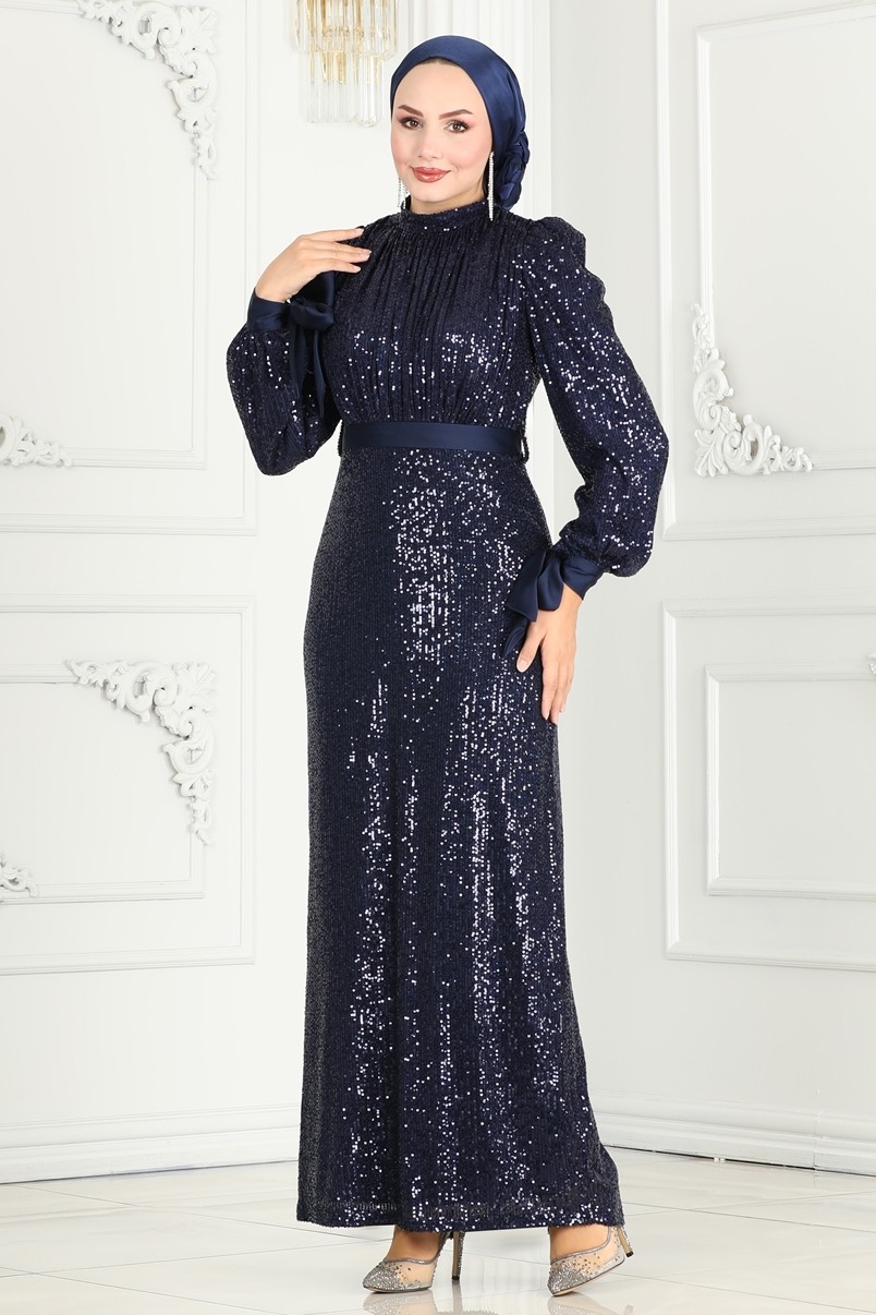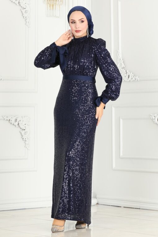 SUAL فستان سهرة حورية البحر مزين بالترتر، أزرق داكن