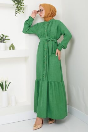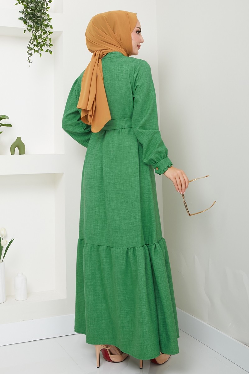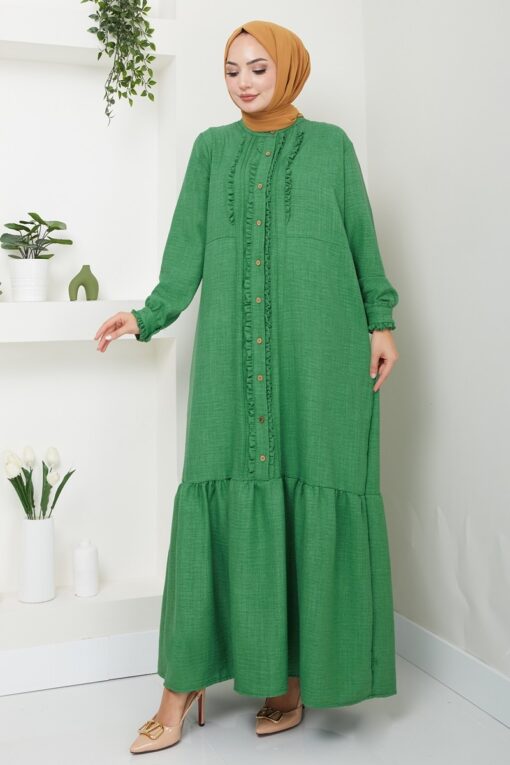 نموذج الفستان ذو الأزرار الأمامية هو منتج للحجاب يمكنك استخدامه بسهولة في جميع الفصول الأربعة. يوصى بالغسيل عند درجة حرارة 30 درجة دون الدوران. الفستان مصنوع من قماش الكتان Aerobin من الدرجة الأولى، ويتميز برقبة دائرية وتصميم بأزرار أمامية. الفستان، غير المبطن وبه أزرار أكمام نشطة، تمت حياكته من كلا الطرفين لمنع الحزام من الرفرفة، ويترك الجزء الأوسط فارغًا (غير مخيط). الحزام متضمن في المنتج ولكن يمكن استخدامه اختياريًا. إنه يوفر لمستخدميه خيارًا غنيًا بخيارات ألوان مختلفة (Anthracite، Dusty Rose، Brown، Dark Vision، Lacquer، Black، Green) وخيارات الحجم (38، 40، 42، 44، 46، 48).